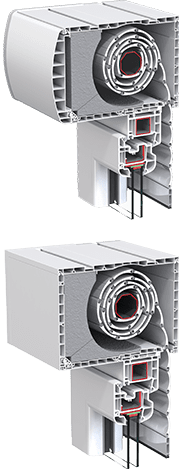 Nova overlapped roller shutters have a modern design and the inside profile of the box is available in both the standard rounded version and the optional straight version.
