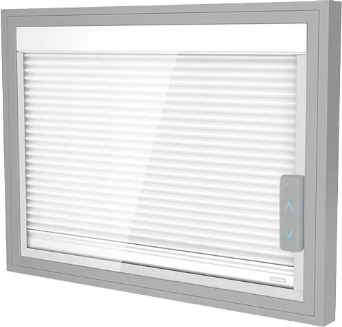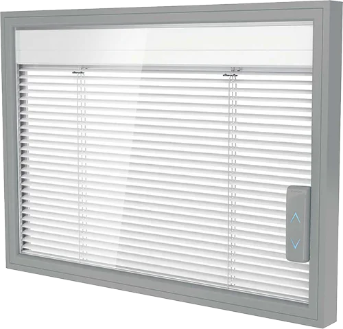 In the ScreenLine system, the blinds are mounted between two glass panes in an insulating glass package. The operation of the blinds, whether manual or electric, does not influence the insulating properties of the glass package, which is mounted in a completely isolated environment.