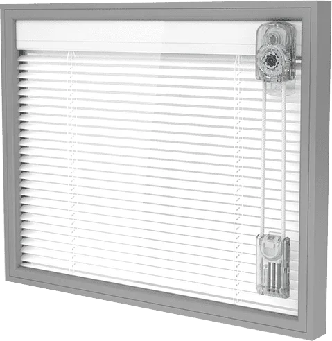 The external action device applied on the glass by means of high-resistance adhesive contains a cord, a tensioning element and a magnet that is perfectly interfaced with the magnetic coupling of the internal controller. The movement of the cord rotates the magnets that activate the slats.